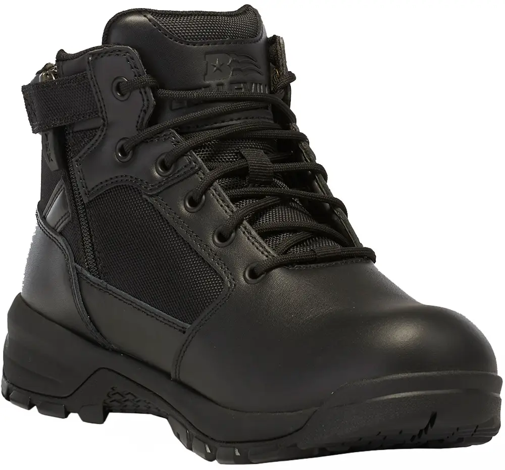 Черевики Belleville Spear Point BV915Z 5" 4 BlackЧеревики Spear Point 5" Lightweight Side-zip від бренду Belleville - тактичне взуття середньої висоти, яке є найкращим варіантом по співвідношенню ціна-якість. Модель виконана з високоякісної, полірованої, натуральної шкіри. Зверху інтегровані вставки з балістичного нейлону щільністю 1680 D. Підошва виготовлена з міцного матеріалу EVA, який має гарні теплоізоляційні та амортизаційні властивості. Формована устілка з поліуретану сприяє відведенню зайвої вологи та рівномірному розподілу навантаження. Для більшої зручності та захисту пальців, передбачений м'який носок. Збоку розміщені надійні блискавки YKK.