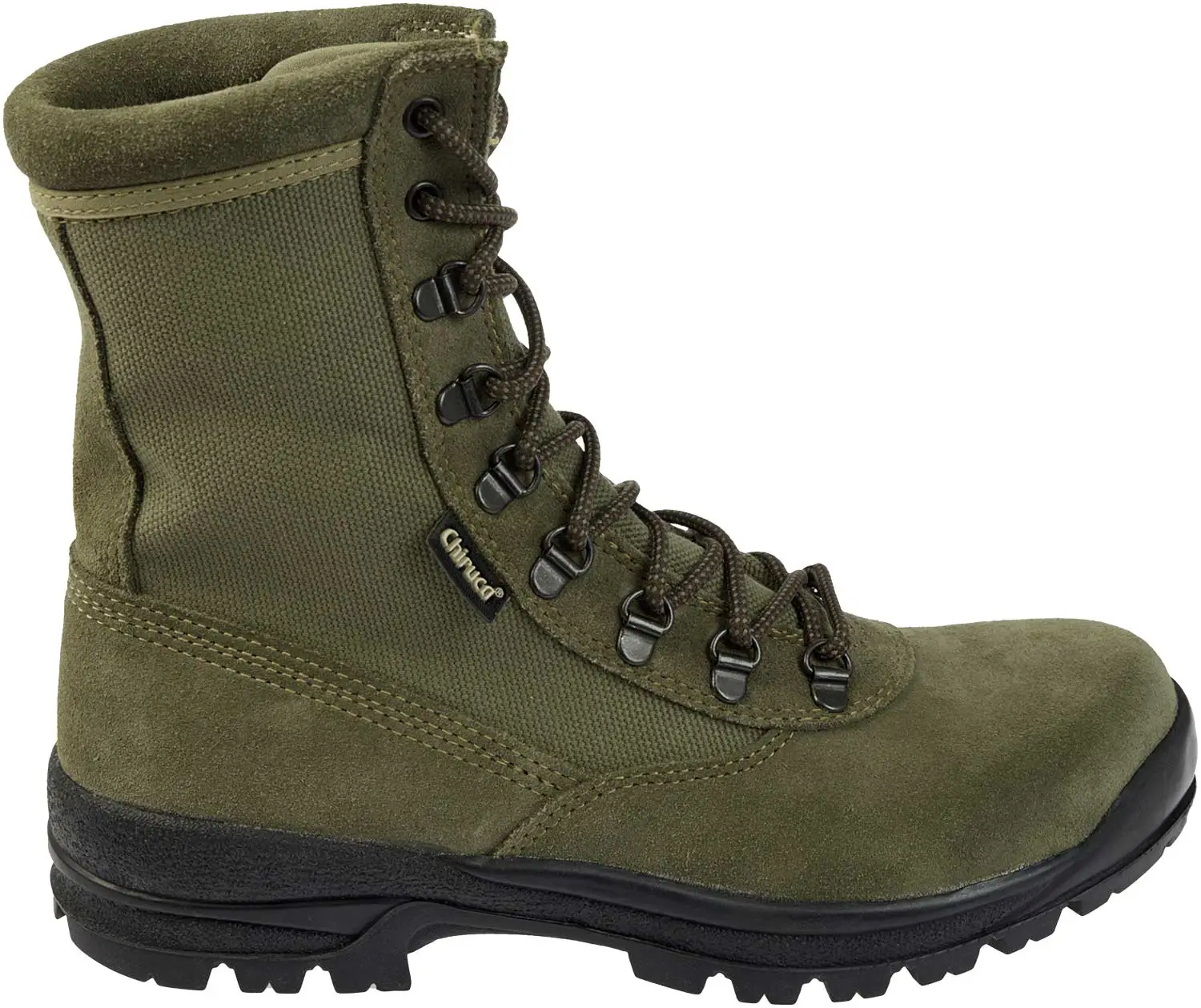 Черевики Chiruca Sabana 45 KhakiЗручні, легкі, шкіряні черевики Chiruca Sabana для літнього і осіннього сезону додатково посилені вставками з Cordura. Завдяки комбінації шкіри та кордури черевики чудово «дихають» у спеку. Гачки та кільця H.R.T. із нержавіючої сталі захистять від врізання шнурків у шкіру черевика. Підошва Leyre Chiruca розроблена із натурального каучука забезпечує високе зчеплення та відмінну стійкість на пересіченому рельєфі. Висота черевиків задовольнить високі вимоги, що висуваються до трекінгового взуття для полювання в жарку пору року, пісок не потрапить усередину черевика і комахи не зможуть прокусити тканинну частину черевика. Температурний режим використання від +5С до +30С.