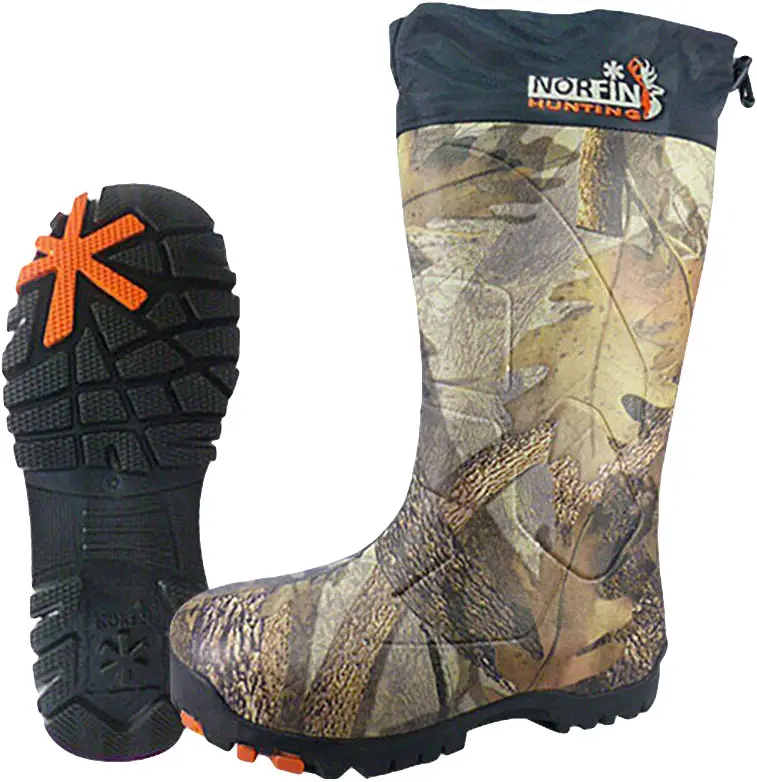 Чоботи Norfin Hunting Forest 46 -40 °Чоботи Norfin Hunting Forest -40 ° ідеально підійдуть для риболовлі та полювання в зимову пору року. Вони виготовлені із сучасного та міцного матеріалу – EVA. Завдяки теплому вкладишу та мікропухирцям повітря в самому матеріалі EVA взуття добре зберігає тепло, не дозволяючи ногам замерзнути навіть у сильні морози, коли температура опускається до -40 °С. Утеплювач - Thinsulate забезпечує теплоізоляцію утеплювач, він відводить зайву вологу. Прогумована щільна підошва з глибоким протектором забезпечує гарне зчеплення фактично з будь-якою поверхнею та захищає стопу від різних пошкоджень. Для полегшення знімання взуття на п'яті розташований виступ зачепившись носком, за який чобіт знімається швидко. Утеплений вкладиш посилено вставкою на п'яті, таке рішення дозволяє підвищити термін служби виробу. На верхній частині чобіт розташована нейлонова манжета з утяжкою, завдяки даній вставці сніг, бризки та краплі дощу не потраплять усередину і Ваші ноги залишаться сухими та теплими.