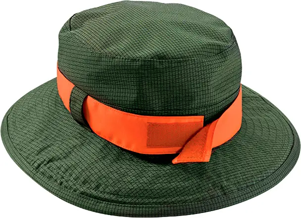 Капелюх Riserva R1072 M ЗеленийМисливський капелюх Riserva виконаний з водонепроникного нейлону Cordura ripstop 600 D, а його підкладка – з водонепроникного матеріалу RISERVAtex. Для розпізнавання під час полювання ця модель оснащена знімною яскравою помаранчевою стрічкою , яка протягується в петлі та фіксується на липучку. Капелюха можна носити не тільки на полюванні, але й як щоденний головний убір.