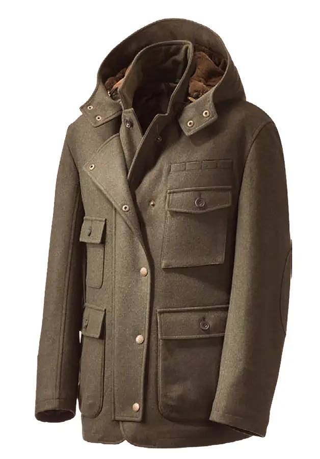 Habsburg Ernst виготовлена з вовни першокласної обробки в поєднанні вовни ондатри в капюшоні. Зручність і практичність в куртці Ernst продумана до дрібниць, чотири накладних кишені з клапаном, два внутрішніх прорізні кишені на блискавці і великий кишеня для дичини на задній частині. Знімний Капюшон з утяжкой обсягу і кріпитися до куртці з допомогою кнопок, рукави посилені в області ліктів для захисту про протирання. Всередині є кріплення для фіксації підстьобування.