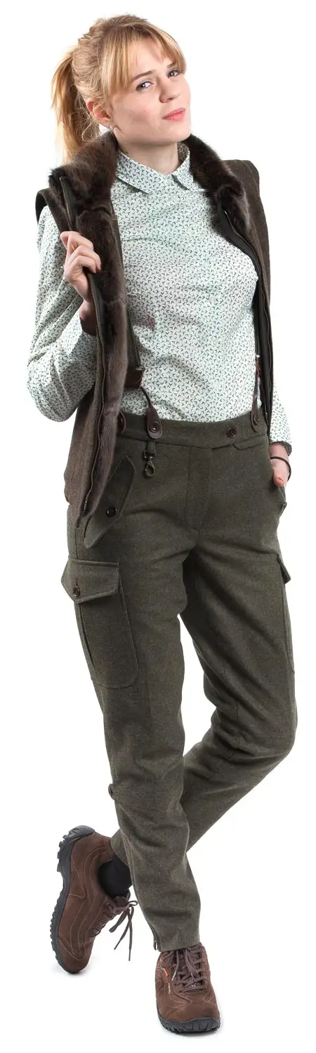 Напівкомбінезон Habsburg Prebersee m. hamster 40Класичний жіночий демісезонний напівкомбінезон Habsburg Prebersee Hamster виконаний з 100% вовни в європейському стилі, в однотонному забарвленні. Шкіряні петлі на підтяжках забезпечать надійну фіксацію за гудзики. Внутрішня сторона штанів, яка захищає поперек, обшита натуральним хутром горностая.