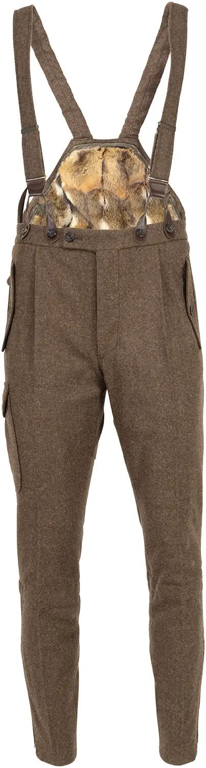 Напівкомбінезон Habsburg Wallsee mit Hamster 52 BrownНапівкомбінезон Wallsee m. Hamster підходить для зимових прогулянок і полювання. Виготовлений із необробленої вовни різних порід овець. Вона вирізняється зносостійкістю та довговічністю. Захищає від сильного вітру і низьких температур, а знімний вкладиш підбитий хутром хом'яка, забезпечує додаткове тепло. Підкладка виконана з 49% віскози і 51% ацетату. Це приємний до тіла, м'який матеріал, який не мнеться і не вицвітає, гіпоалергенний і повітропроникний.