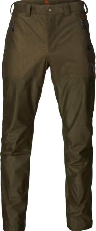 Штани Seeland Avail 54 ЗеленийМисливські штани Seeland Avail пошиті з безшумної тканини в стриманому темно-зеленому кольорі. Двошарова вітрозахисна і водонепроникна мембрана SEETEX® з водостійкістю 10 000 мм водяного стовпа здатна захистити від тривалого дощу будь-якої інтенсивності, мокрого і сухого снігу. У штанах передбачені три зручні кишені, які застібаються на водонепроникні блискавки. Ширина штанини знизу регулюється текстильними застібками.