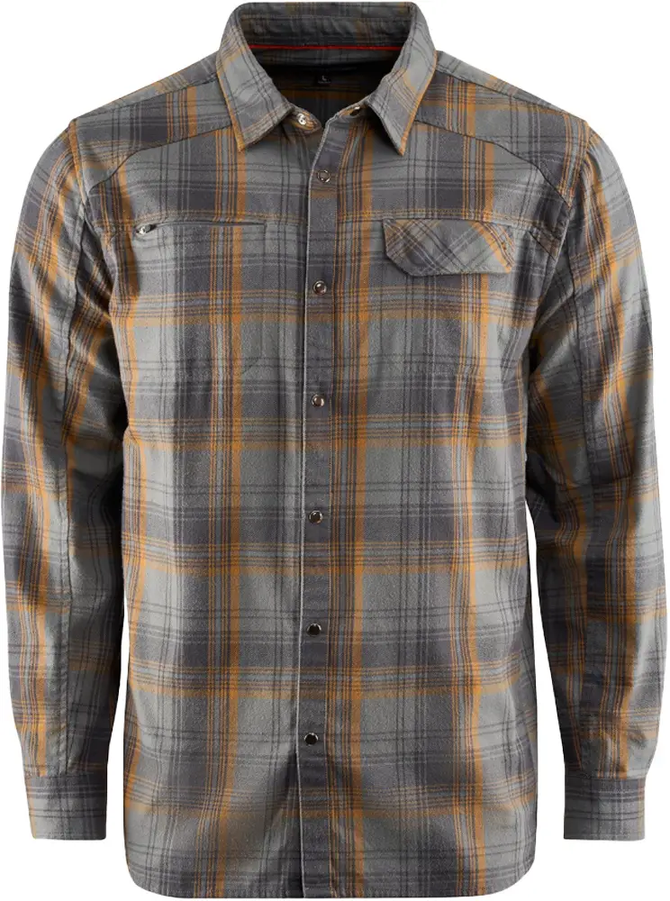 Сорочка Grundens Dispatch S Smoke PlaidDispatch — тепла фланелева сорочка із натуральною бавовняною текстурою, що забезпечує комфорт у прохолодну погоду. Модель оснащена прихованою нагрудною кишенею на блискавці, яка підходить для безпечного зберігання дрібних предметів — повідків, волосіні, карт або готівки. Центральна застібка і нагрудні кишені виконані на кнопках для зручності у використанні.