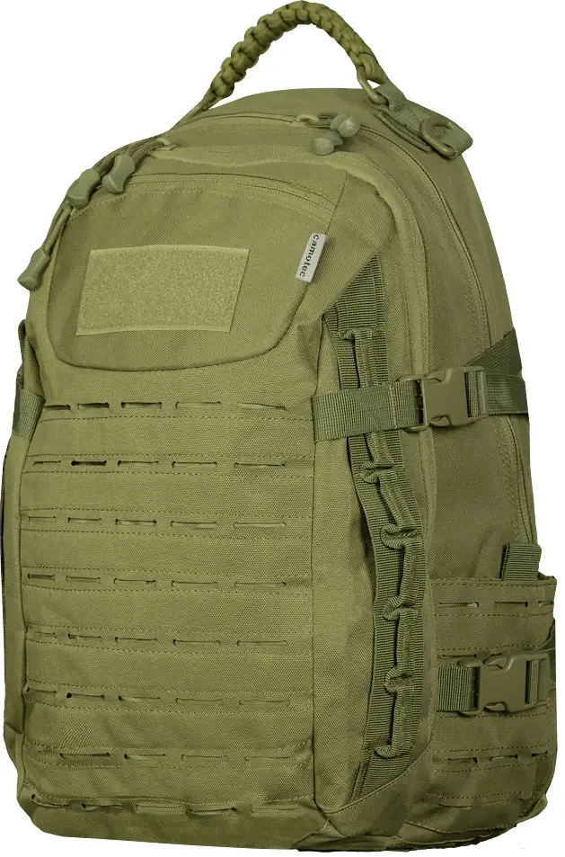 Рюкзак Camotec BattleBag LC оснащений передньою системою кріплення MOLLE, виконаною за технологією Laser Cut, що дає змогу легко прикріпити додаткові підсумки та спорядження. Прошиті петлі на передній частині також дають можливість закріпити додаткові аксесуари. Попереду є відділення для дрібних речей, панель під патчі та шеврони, а ручка для перенесення виконана з плетеного паракорду, який можна використовувати в екстрених ситуаціях. Бічні кишені із застібкою на липучці та блискавкою ідеально підходять для дрібних предметів або пляшок із водою.