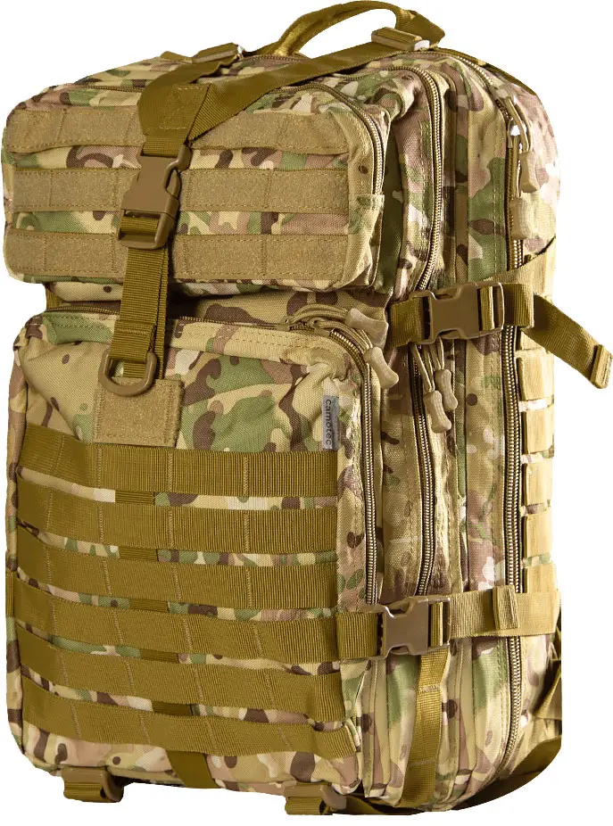 Рюкзак Camotec Foray 50 CoyoteCamotec Foray – це тактичний, триденний, рюкзак об’ємом 40/50 л. Модель має ряд конструктивних особливостей, таких як стропи MOLLE, пулери на бігунках, D-кільця, а також додаткові лямки для регулювання об'єму (компресійні лямки).