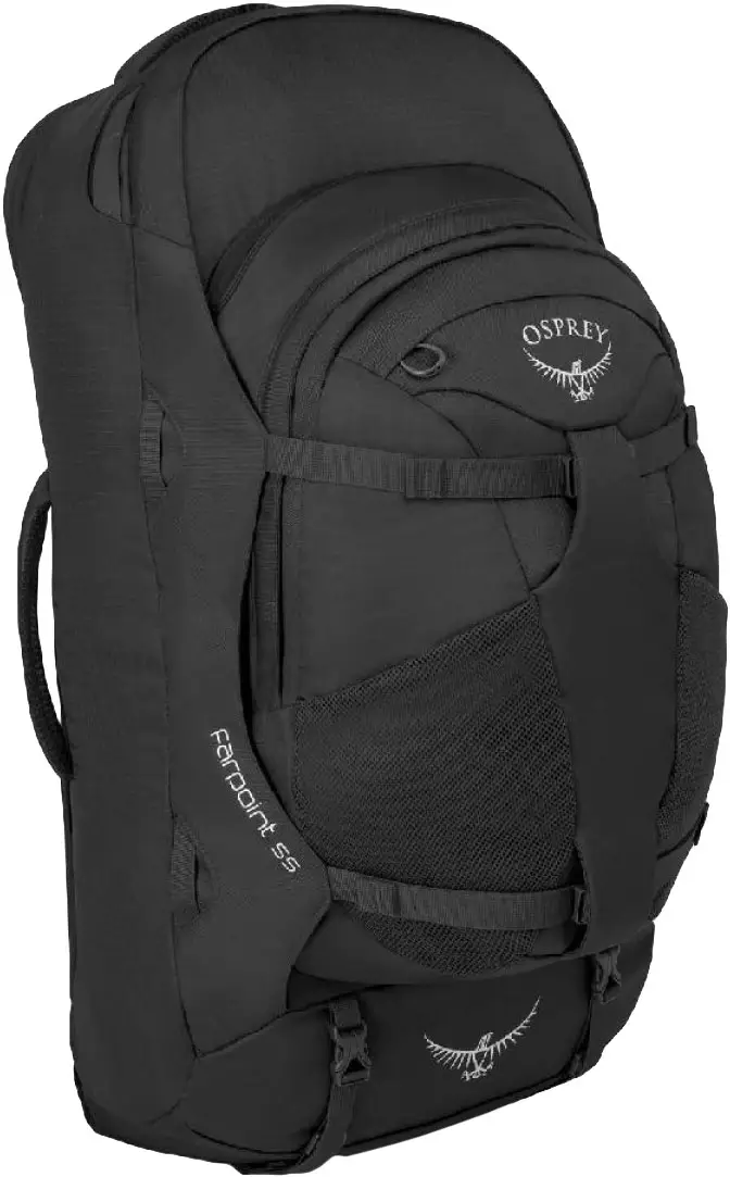 Рюкзак Osprey Farpoint 40+15 BlackФункціональний рюкзак Osprey Farpoint підійде для подорожей. Серія рюкзаків виготовляється з різними об’ємами: 40, 55, 70 і 80 літрів. Рюкзак Osprey Farpoint 40 відповідає вимогам авіакомпаній щодо розміру ручної поклажі. Рюкзаки Osprey Farpoint 55 і Osprey Farpoint 70 укомплектовані переднім знімним міським рюкзаком на 13 літрів (ДхШхВ: 44х29х23 см, 500 г), в який можна покласти всі важливі і необхідні для Вас речі. Завдяки бічній ручці, рюкзак можна використовувати як дорожню валізу. Він зшитий з нейлону - Mini Hex Dimond щільністю - 210D, з особливим плетінням армованої нитки Ripstop, яке дозволяє збільшити зносостійкість і довгі роки експлуатації. Спинка зроблена з сітчастого матеріалу, м'які плечові лямки, нагрудна і пов'язка на стегнова ефективно розподіляють вагу, при необхідності лямки можна заховати в спеціальне відділення, і вийде стильна валіза. Дві компресійні стропи дозволяють зменшити об’єм рюкзака-валізи. Дві сітчастих кишені, м'яке відділення для ноутбука (15.4 ") або планшета і місткий головний відсік зможуть розмістити всі необхідні речі для подорожі.
