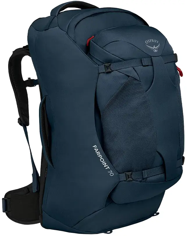 Рюкзак Osprey Farpoint 70 BlackФункціональний рюкзак Osprey Farpoint підійде для подорожей. Серія рюкзаків виготовляється з різними об’ємами: 40, 55, 70 і 80 літрів. Рюкзак Osprey Farpoint 40 відповідає вимогам авіакомпаній щодо розміру ручної поклажі. Рюкзаки Osprey Farpoint 55 і Osprey Farpoint 70 укомплектовані переднім знімним міським рюкзаком на 13 літрів (ДхШхВ: 44х29х23 см, 500 г), в який можна покласти всі важливі і необхідні для Вас речі. Завдяки бічній ручці, рюкзак можна використовувати як дорожню валізу. Він зшитий з нейлону - Mini Hex Dimond щільністю - 210D, з особливим плетінням армованої нитки Ripstop, яке дозволяє збільшити зносостійкість і довгі роки експлуатації. Спинка зроблена з сітчастого матеріалу, м'які плечові лямки, нагрудна і пов'язка на стегнова ефективно розподіляють вагу, при необхідності лямки можна заховати в спеціальне відділення, і вийде стильна валіза. Дві компресійні стропи дозволяють зменшити об’єм рюкзака-валізи. Дві сітчастих кишені, м'яке відділення для ноутбука (15.4 ") або планшета і місткий головний відсік зможуть розмістити всі необхідні речі для подорожі.