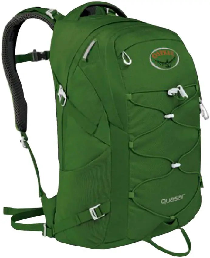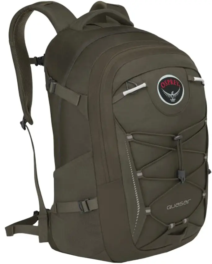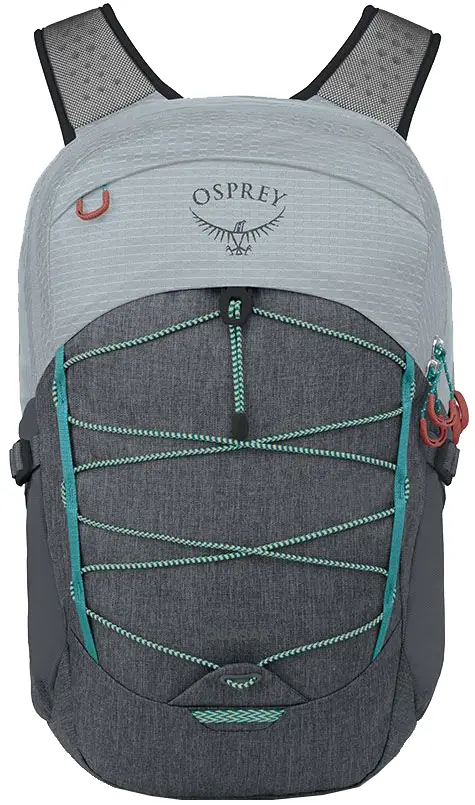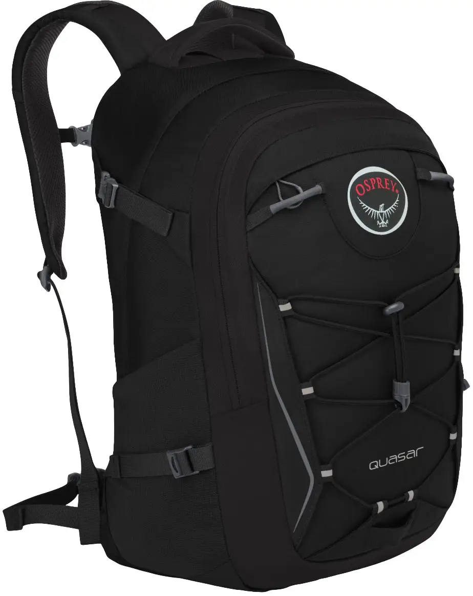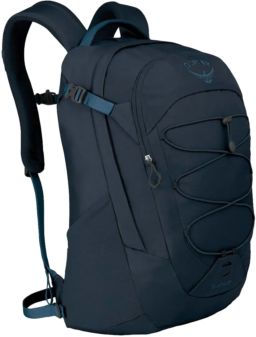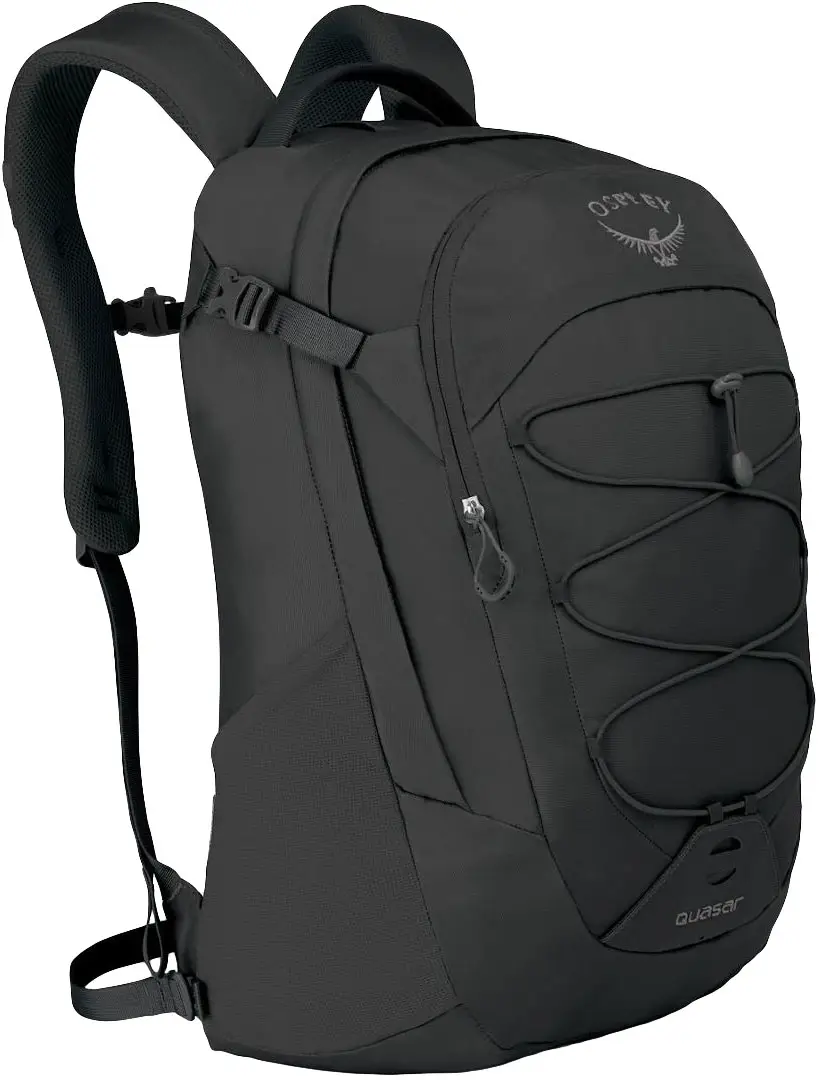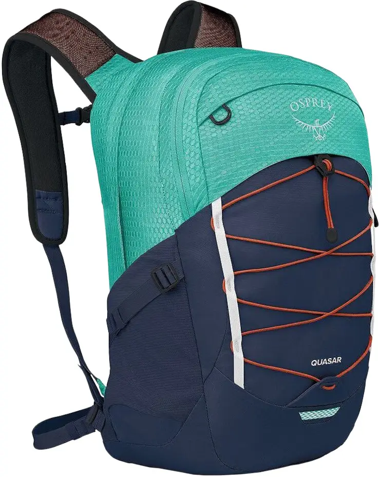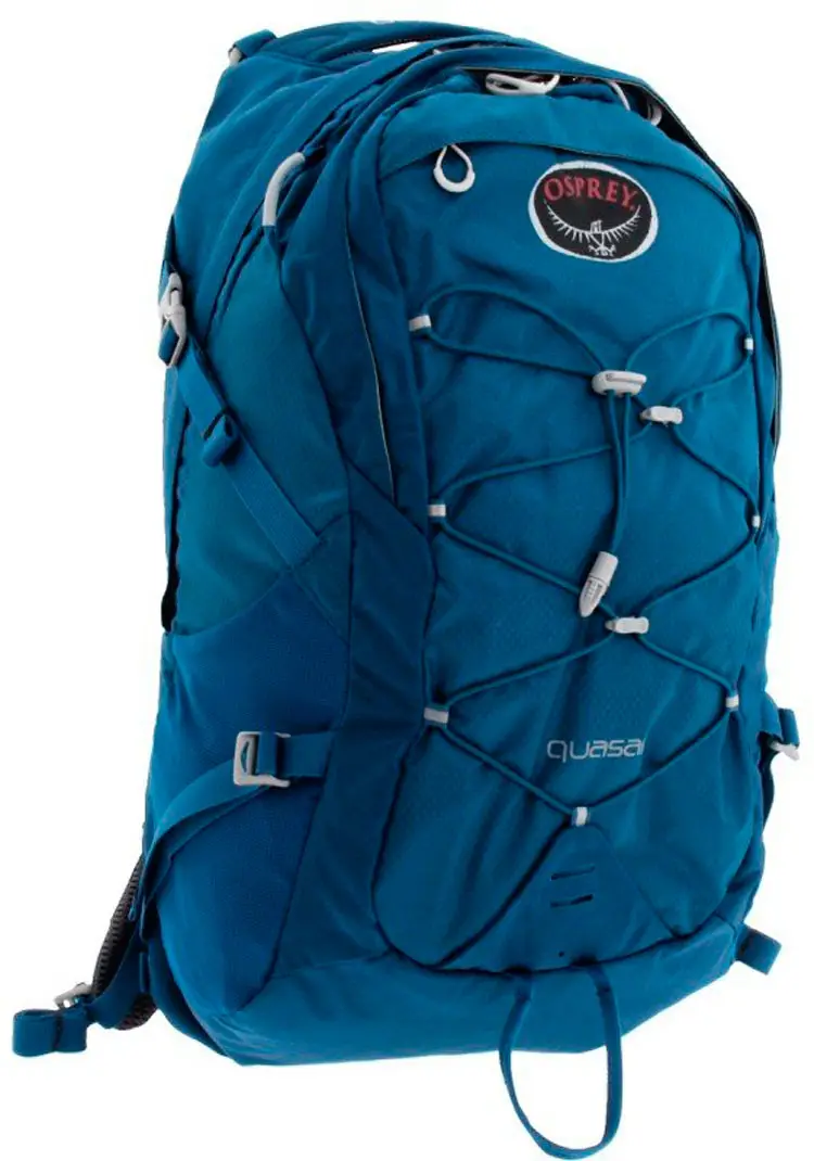 Рюкзак Osprey Quasar 26 Cascade blue/coal greyРюкзак Osprey Quasar - ідеально підходить для повсякденного користування. Він зшитий з щільного зносостійкого нейлону, анатомічна спинка забезпечує за ефективну циркуляцію повітря. Нагрудний і набедрений ремені забезпечують ідеальну посадку по фігурі і правильний розподіл ваги. У рюкзаку легко помістяться ноутбук, важливі папери, змінне взуття і одяг. Для ноутбука передбачено спеціальне відділення з м'якою захисною стінкою. На фронтальній панелі рюкзака знаходиться еластична стяжки, за допомогою якої можна легко закріпити одяг або інші предмети. Також Ви знайдете вбудований фіксатор для ключів, кишеню-органайзер, кишеню для окулярів, відділ для планшета.