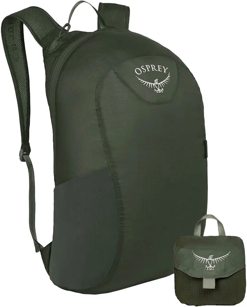 Рюкзак Osprey Ultralight Stuff Pack O/S 18 BlackРюкзак Osprey Ultralight Stuff об'ємом 18 літрів і вагою всього лише 100 грамів компактно складається у внутрішню кишеню, що дає можливим взяти його з собою в будь-яку поїздку і використовувати його як додатковий рюкзак. Він пошитий з міцного нейлону з особливим плетінням ниток - Ripstop, яке збільшує зносостійкість матеріалу, тканина рюкзака просочена вологовідштовхувальним просоченням. Плечові лямки з вентильованої сітки легко регулюються по довжині. У верхній частині передбачена ручка, за яку рюкзак можна тримати або десь підвісити. У невеликій верхній кишені розташоване кріплення для ключів і саме відділення, в яке згортається рюкзак. У просторому головному відділенні можна розмістити всі потрібні речі для подорожі. Збоку розташована сітчаста кишеня для пляшки. Американська компанія Osprey на вибір пропонує кілька різнокольорових варіантів. Рюкзак Osprey Ultralight Stuff підійде для одноденних походів або прогулянок містом.