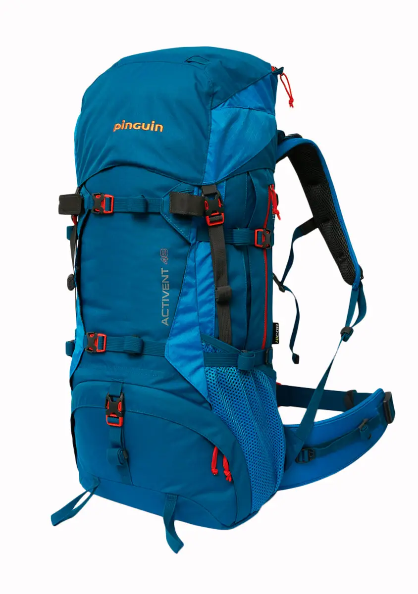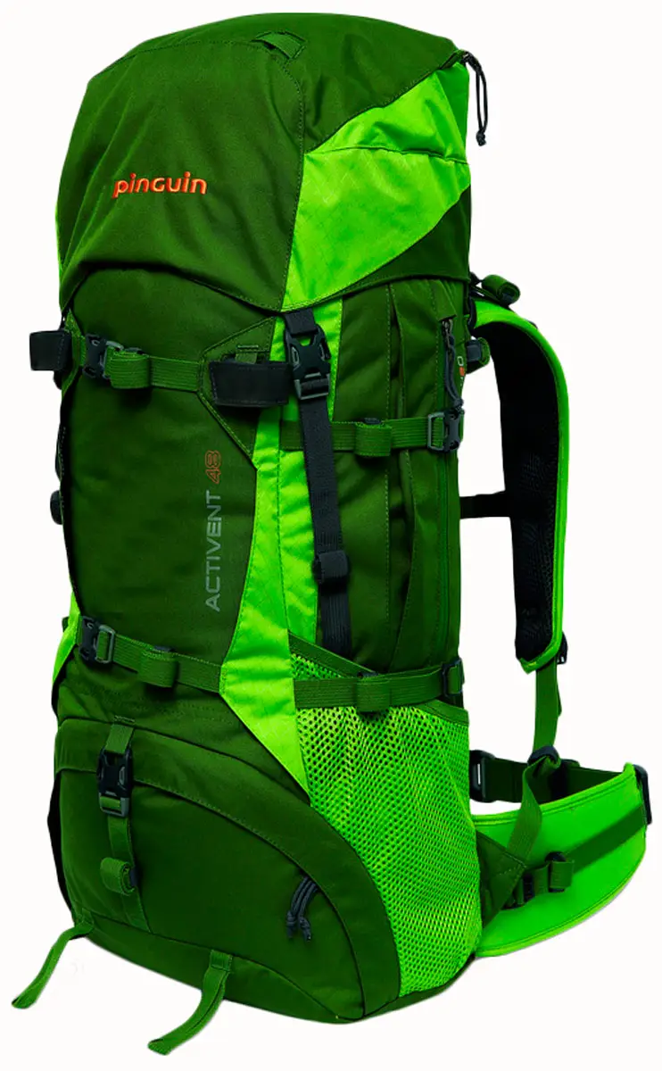 Бічні кишені інтегровані з рюкзаком так, що, порожні, вони повністю зливаються з основною частиною рюкзака. Розподіл ваги здійснюється за допомогою компресійних ременів. Компресійні ремені здійснюють розподіл навантаження та корекцію форми, навіть якщо рюкзак наповнений не повністю. Розпускання ременів дозволяє відкрити основний відділ рюкзака. Стегновий пояс можна регулювати по вертикалі. Нижній відсік відокремлюється від головного за допомогою перегородки, що відокремлюється. Дощовий чохол – це додатковий аксесуар до всіх рюкзаків. Нейлон 6.6 - високоміцна зносостійка тканина, яка застосовується для рюкзака. При розробці та виробництві рюкзаків особлива увага звертається на конструкцію несучих систем та можливостей їх оптимального ергономічного регулювання та підгонки по фігурі користувача, забезпечення гарної вентиляції спини та довгого терміну служби. Тому застосовуються найсучасніші та якісні матеріали та комплектуючі. Фурнітура від відомого японського виробника YKK, що використовується у вузлах кріпильної системи та блискавках, давно зарекомендувала себе, як надійна та безвідмовна. Рюкзак Pinguin Activent стане надійним супутником для захоплених рибалок велосипедистів та піших туристів.
