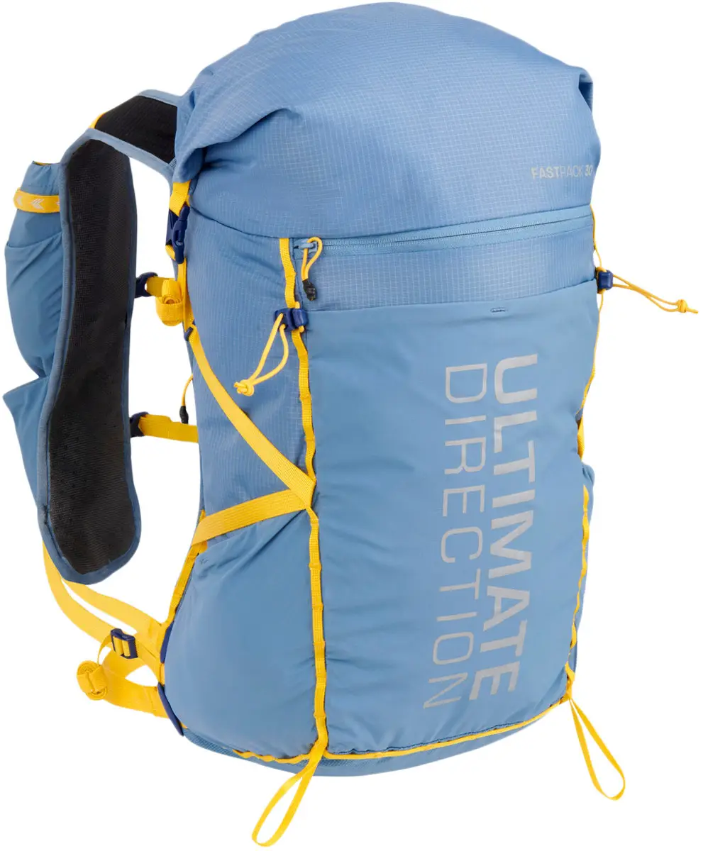 Рюкзак Ultimate Direction Fastpack иготовлений із міцного поліестеру, задня панель виконана за технологією Infiknit, яка забезпечує високу міцність і повітропроникність. Світловідбивні елементи підвищують безпеку туриста під час пересування в темний час доби.