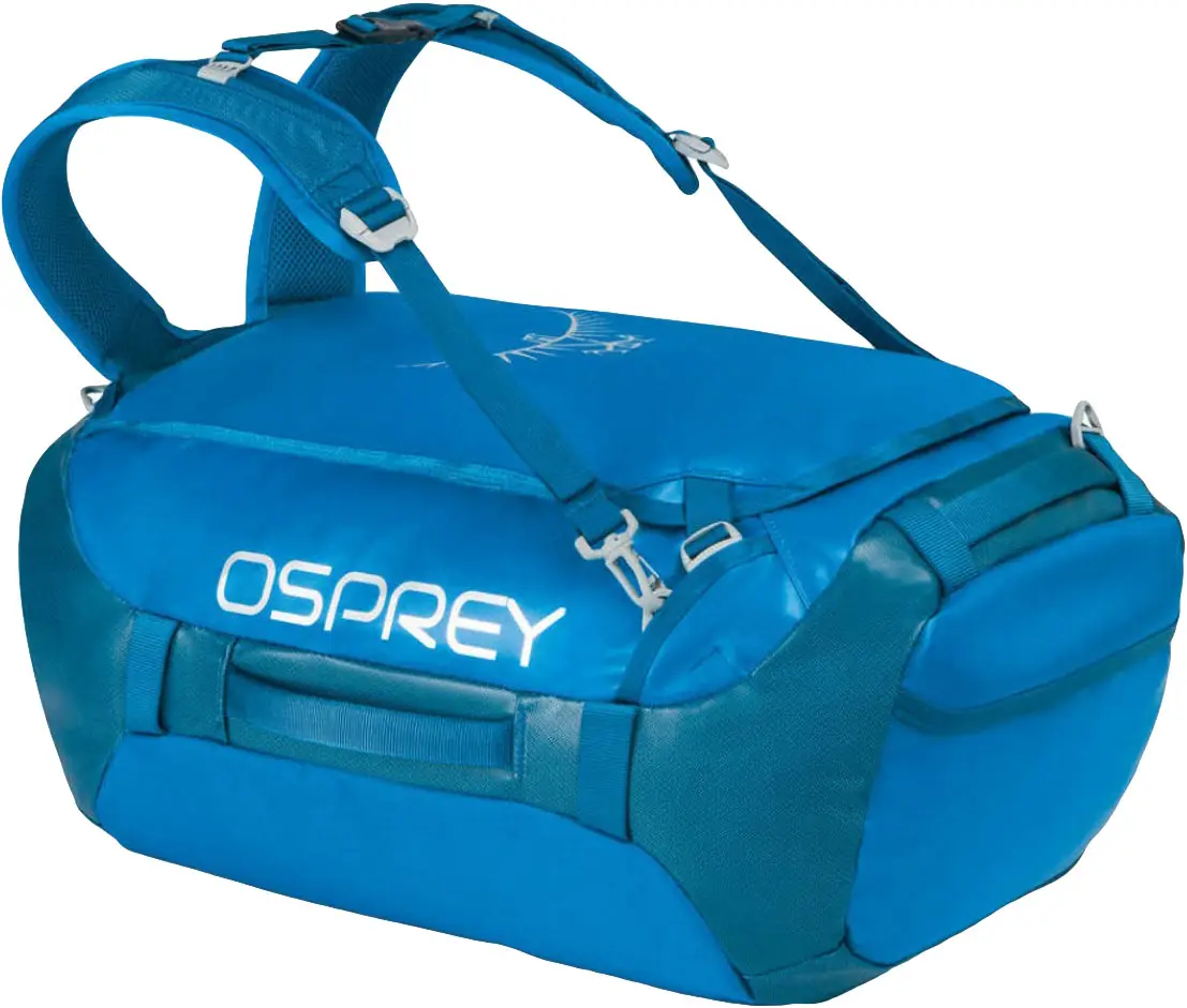 Сумка рюкзак Osprey Transporter 40 Venturi blueСумка Osprey Transporter трансформується в зручний рюкзак. Завдяки різним розмірам можна вибрати найбільш підходящий варіант для походу на тренування або поїздку у відрядження, так само в цій серії є досить великий Transporter 130 - 120, який підійде для тривалих подорожей і навіть для походів в гори. Вони пошиті з міцного водовідштовхувального нейлону TPU щільністю 800D. Завдяки інноваційній конструкції дану сумку можна носити декількома способами: як рюкзак, а сховавши плечові шлейки, вийде зручна дорожня сумка. М'які плечові лямки і нагрудна стяжка фіксують рюкзак на спині і сприяють більш правильному розподілу ваги. Збоку передбачена невелика кишенька на блискавці і відділення для картки, яке дозволить швидко знайти свою сумку на стрічці в аеропорту. Американська компанія Osprey подбала про збереження Ваших речей і розробила бігунки на блискавці таким чином, щоб можна було їх закрити на кодовий замок (не постачається в комплекті). Велике просторе внутрішнє має кришку, що закривається на U-подібну блискавку для більш зручного завантаження рюкзака трансформера.
