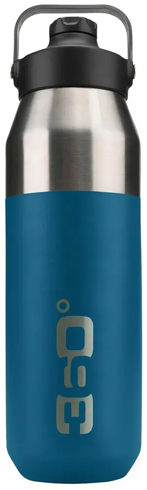 Термопляшка 360° Degrees Vacuum Insulated Stainless Steel Bottle with Sip Cap. 1L. DenimТермофляга 360° Degrees Vacuum Insulated Stainless Steel Bottle with Sip Cap виконана з нержавіючої сталі. Вакуумна ізоляція та внутрішня колба дозволяють добре зберігати як холодну (48 годин), так і гарячу (8 годин) температуру напою. Має широку горловину, тому в напої можна додавати лід, а маленький поїльник Sip Cap забезпечує зручність при питті напоїв. При виготовленні термофляги використано електрополірування внутрішньої поверхні, завдяки чому воно не вбирає запахи, легко миється без використання миючих засобів. Термопляшка 360° Degrees Vacuum Insulated Stainless Steel Bottle with Sip Cap має стильний та сучасний дизайн та ідеально підійде для виїзду на природу, туристичних походів та походів до школи. Компанія 360° Degrees подбала про зручність при перенесенні термоса і зробила дуже зручну ручку, яка є магнітом для поїльника - Sip Cap.