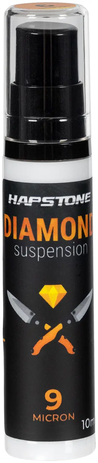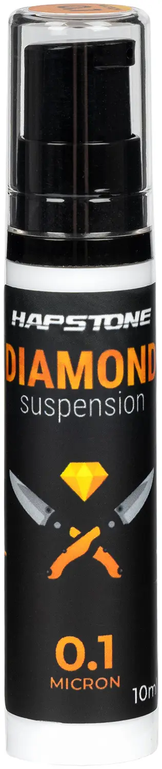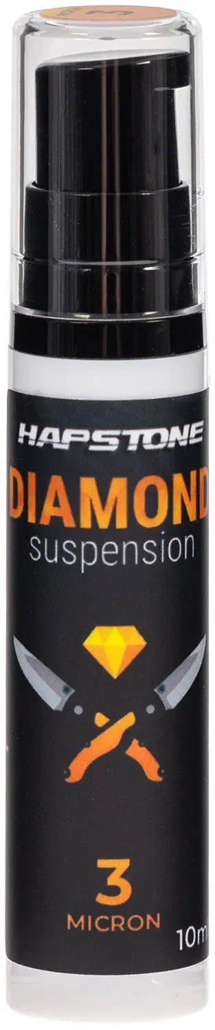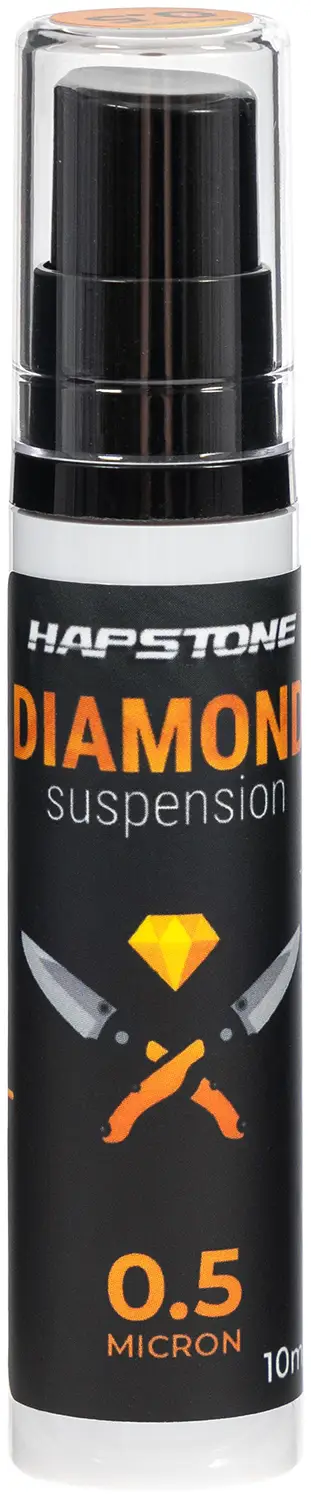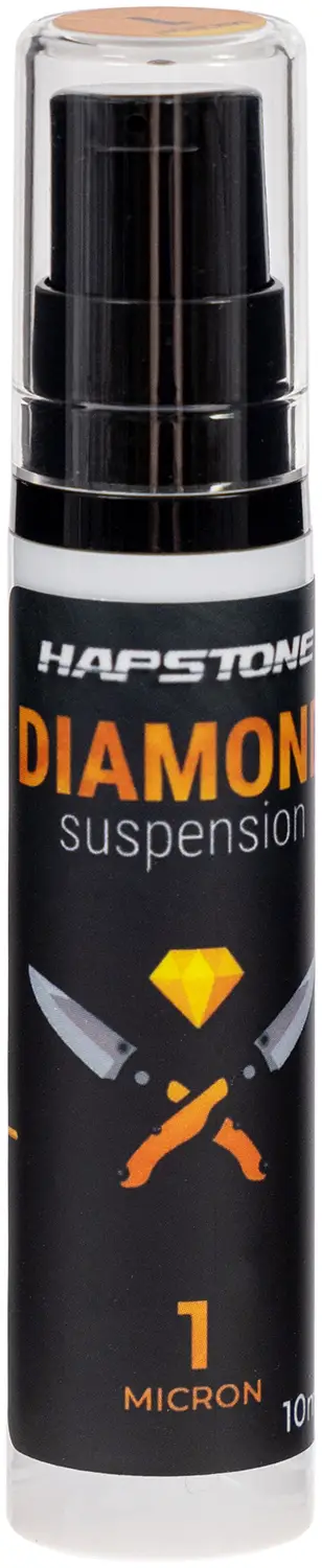 Алмазна суспензія Hapstone (6 мкм)Алмазна суспензія Hapstone призначена для полірування ножів, забезпечуючи дзеркальний блиск крайки без подряпин завдяки високоякісному алмазному порошку. Для використання нанесіть необхідну кількість суспензії на полірувальну поверхню, рівномірно розподіліть і дайте їй висохнути. Оскільки залишки суспензії можуть залишатися на притирі, рекомендується використовувати окремі бланки для різних зернистостей. Якщо на шкірі накопичилися залишки, видаліть їх ножем або спеціальним інструментом перед нанесенням свіжої суспензії.