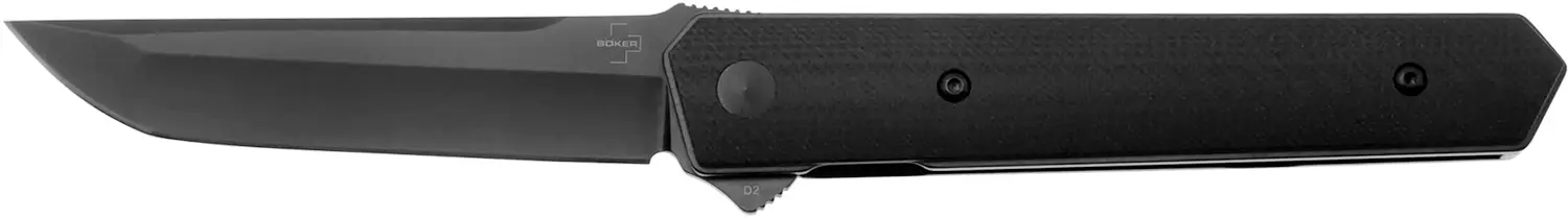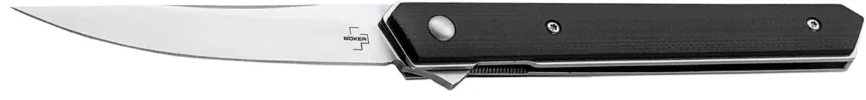 Ніж Boker Kwaiken BlackУспішна серія складних ножів Kwaiken Flipper розроблена американським ножовим майстром Лукасом Бернлі (Lucas Burnley) після не менш популярних і затребуваних серій Kwaiken Folder і Kwaiken Mini. В якості матеріалу для виготовлення клинка використана японська сталь VG-10. Клинок має увігнуті спуски (Hollow Grind) і витягується за допомогою фліпера з акуратною насічкою для більш надійного «зчеплення» з пальцем. Система IKBS (Ikoma Kort Bearing Sistem) забезпечує легке і плавне розкриття і закривання складного ножа. В більшості моделей в ролі фіксуючого механізму виступає популярний замок Liner Lock. В залежності від моделі накладки руків'я можуть бути виготовлені з карбону, титанового сплаву, нержавіючої сталі або склотекстоліту G10. Для більш зручного носіння передбачена невелика кишенькова кліпса. Складані ножі серії Kwaiken Mini Flipper мають такий же лаконічний дизайн, як у їх «старших братів», але відрізняються більше компактними розмірами. Клинки виготовлені зі сталі D2, ножі оснащені з'ємною кліпсою (модель Kwaiken Mini Flipper Titan).