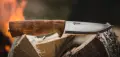 Клинок ножа, на відміну від інших моделей, виготовлений з тришарової вуглецевої сталі, забезпечує вкрай ефективні показники різу. Рукоятка з деревини карельської берези має форму, що забезпечує комфорт при будь-якому способі утримання.