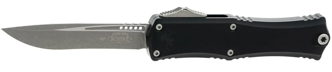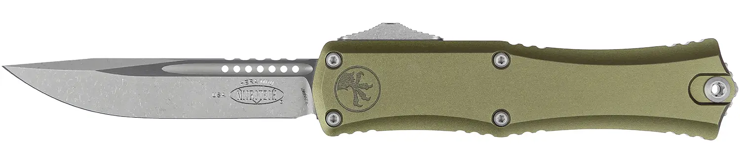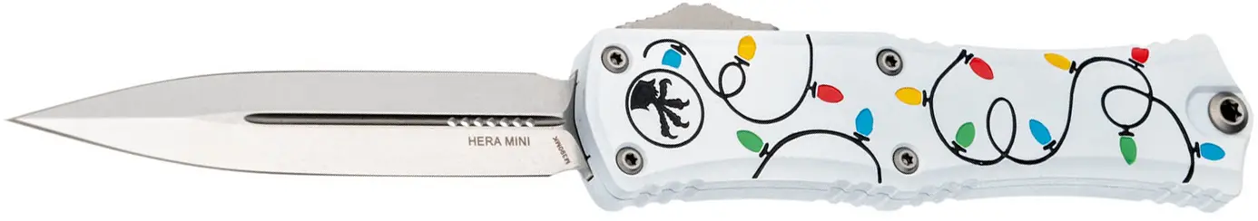 Ніж Microtech Hera II Mini Double Edge Stonewash Christmas GreenHera II - це збільшена версія найплавнішого OTF бренду Microtech - моделі Hera. Нова версія отримала абсолютно новий механізм приводу, завдяки чому плавність ходу клинка зросла в рази. Hera II - це все, що ви хотіли б бачити в більшому OTF. Модель оснащена реверсивною кишеньковою кліпсою від популярного виробника Glykon зі стандартним кріпленням Torx для легкого демонтажу. Hera II має 4-дюймовий клинок, трохи більший за Combat Troodon, але набагато плавніший і простіший в експлуатації. Руків'я, як і в оригінальної моделі, виконано з надлегкого, проте надміцного авіаційного алюмінію.