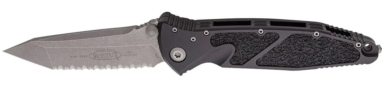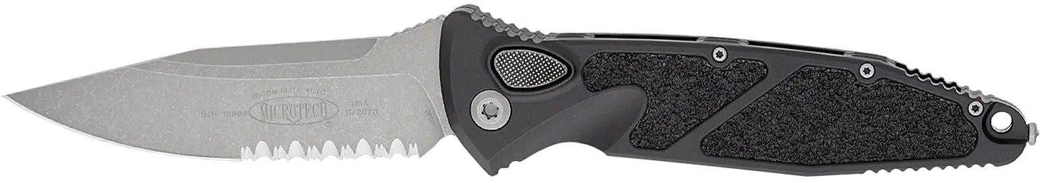 Ніж Microtech Socom Elite Drop Point Apocalyptic BlackСерія Microtech Socom Elite має два варіанти виконання: складані ножі, клинок яких витягається за допомогою шпеника і автоматичні ножі з боковим викидом клинка.