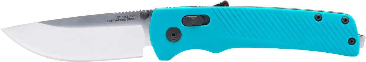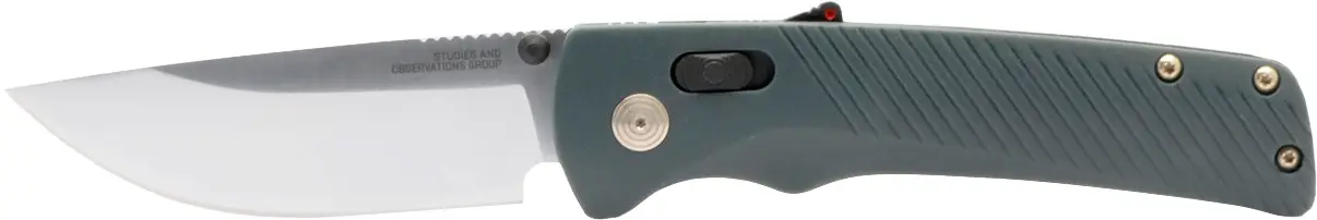 Клинок з прямим обухом виготовлений зі сталі марки D2 з кріогенною обробкою, що збільшує стійкість до зносу. Клинок може мати фінішне покриття із нітриду титану чорного кольору, яке захищає сталь від пошкоджень або сатиновий фініш. Підпружинений клинок витягується за допомогою шпеника і надійно фіксується в робочому положенні двостороннім замком AT-XR. Дизайн замка перешкоджає випадковому відкриттю.