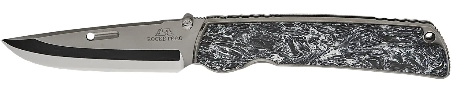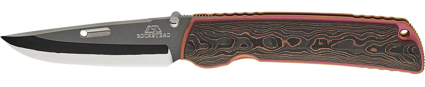 Ніж Rockstead Higo II X-FCF-ZDP Dark Matter CopperHIGO II X - це покращена версія моделі HIGO II. Оновлений ніж отримав новий замок Liner Lock, замість Frame Lock. Клинки виконані з преміальної, порошкової сталі ZDP189 виробництва концерну Hitachi Metals. Приводиться ніж в робоче положення шпеником. Лайнери руків'я виконані з титану, накладки з вуглецевого волокна у різноманітних варіаціях. На кінці розміщена кліпса та отвір під стильний ремінець.