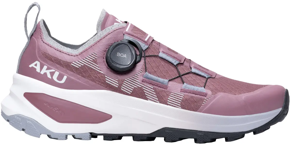 Кроссовки AKU Furiosa Boa W’S 6 Dark Pink/GreyТрекинговые кроссовки AKU Furiosa Boa созданы для тех, кто любит двигаться быстро. Они уверенно держат стопу на каменистых склонах, работают стабильно на лесных тропах и поддерживают во время динамичных однодневных выходов.