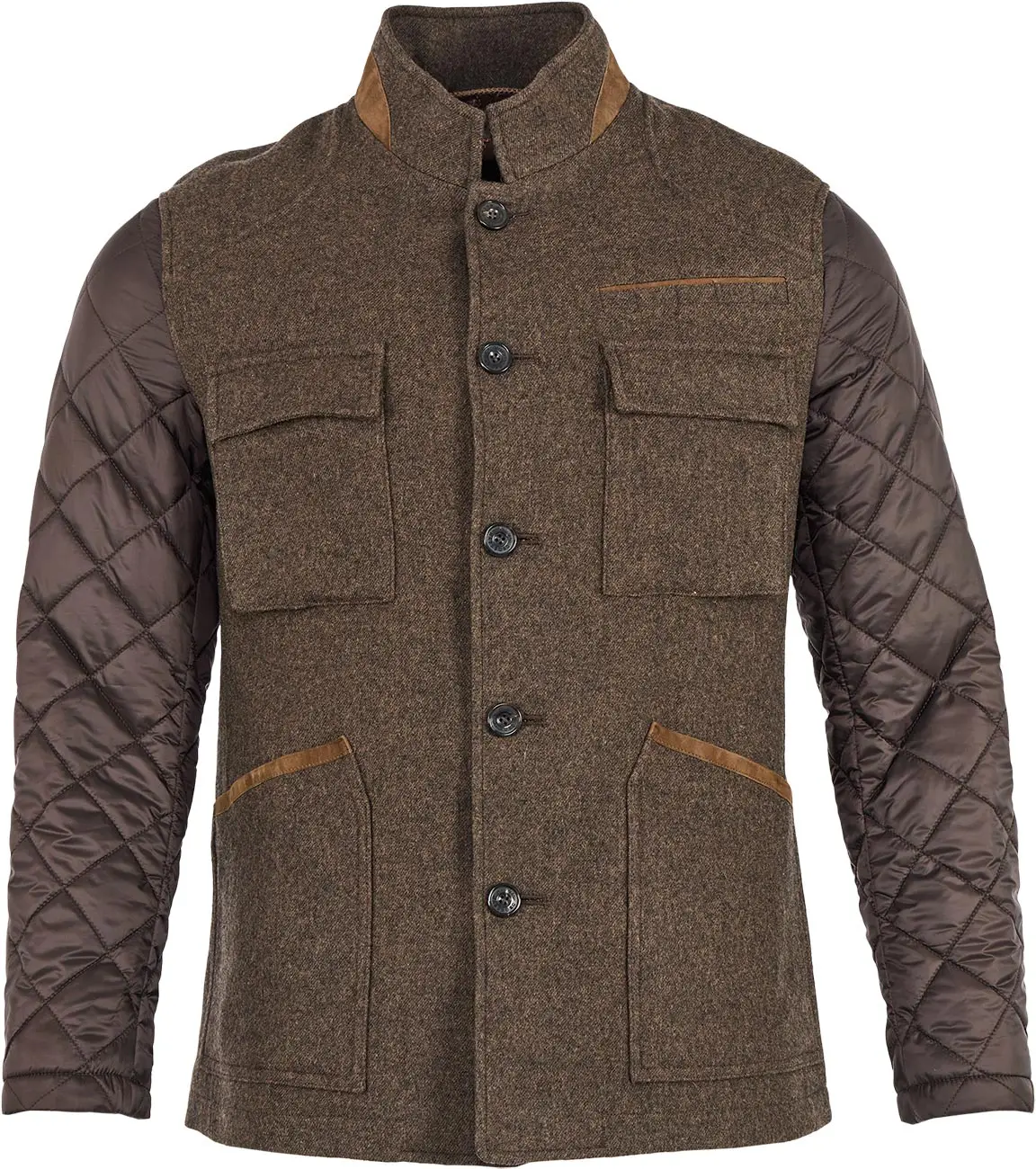 Куртка Habsburg Grafenstein 48 BrownКуртка Grafenstein подходит для охоты. Центральная часть изготовлена из 100% шерсти лоден с замшевыми вставками, рукава - из стеганного материала. Пуговицы выполнены из оленьих рогов, подкладка с утеплителем премиум-класса. Куртка является воплощением австрийского шарма и современной элегантности.