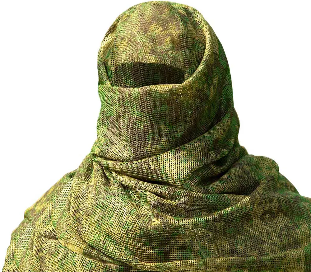 - Маскировка: сетчатая структура шарфа эффективно размывает силуэт, делая пользователя менее заметным на местности;