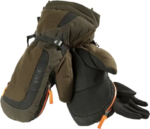 Система работает очень просто: на основных варежках расстегивается водонепроницаемая молния, и освобождаются пальцы внутренних перчаток для произведения выстрела. Варежки выполнены из высококачественного материала с использованием мембраны Gore-Tex®, что делает варежки ветронепродуваемыми и водонепроницаемыми. Места, которые больше всего подвержены износу выполнены из высококачественного материала Cordura®