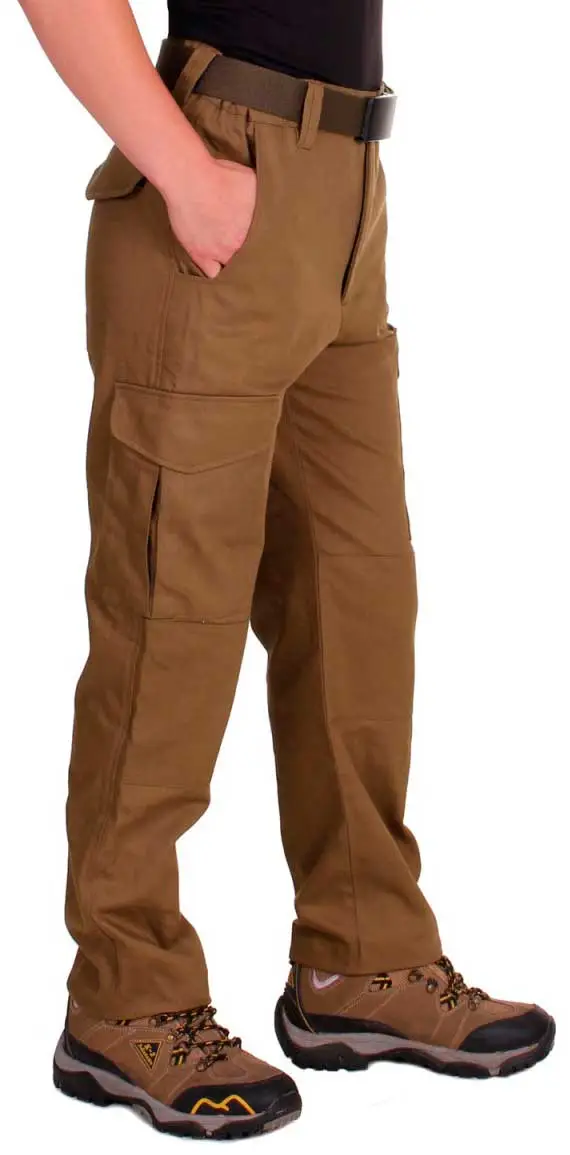 Крой брючины зауженный, под голенище ботинка. На брюках накладные карманы: два боковых, два задних и два передних. Пояс с дополнительной мягкой подтягивающей резинкой. В комплекте нейлоновый поясной ремень со вставкой из натуральной кожи и фирменным тиснением. Для пошива используются прочные оригинальные армированные нитки Gutermann (Германия)
