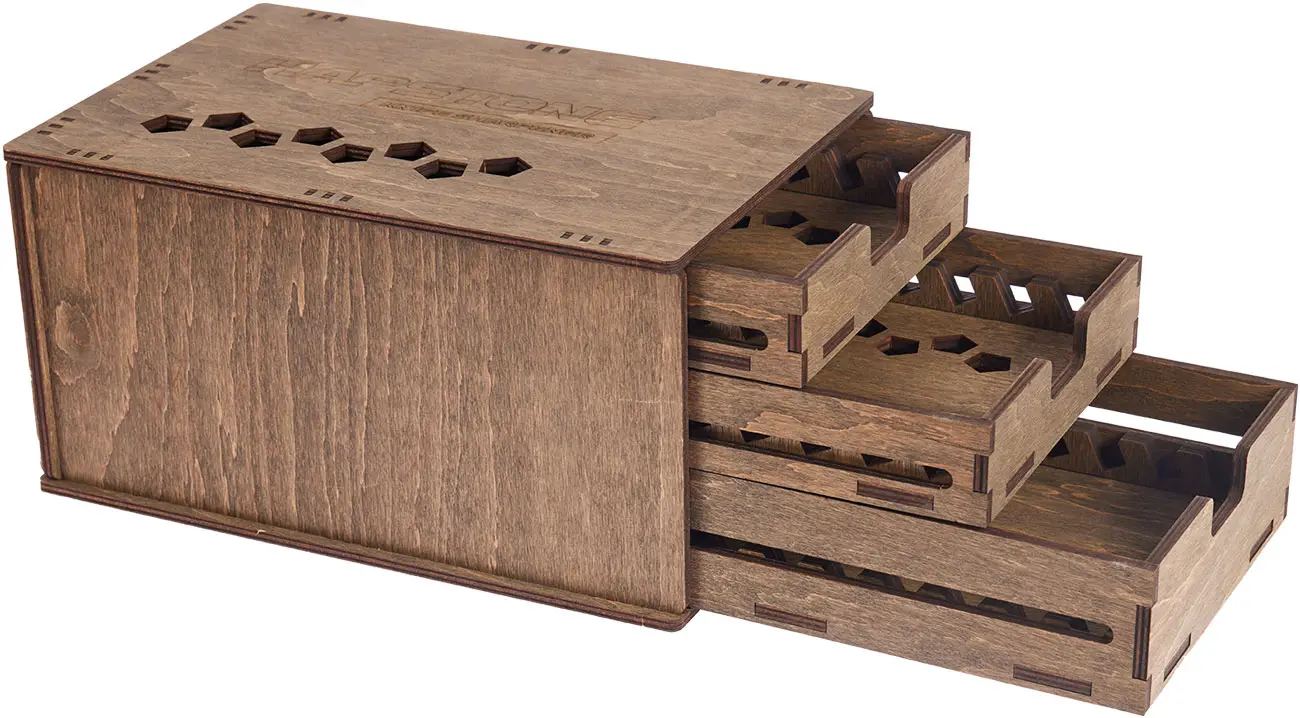 Органайзер Hapstone для 12 точильных камнейОрганайзер Hapstone для точильных камней рассчитан на хранение брусков «апексоидного» формата. Материал – фанера 6 мм. Органайзер выполнен в формате шкатулки и предназначен для хранения точильных камней для станков размером 150х25х12 мм как на бланках, так и без них. Органайзер обработан экологически чистым защитным маслом. В стенках органайзера предусмотрены вентиляционные отверстия.