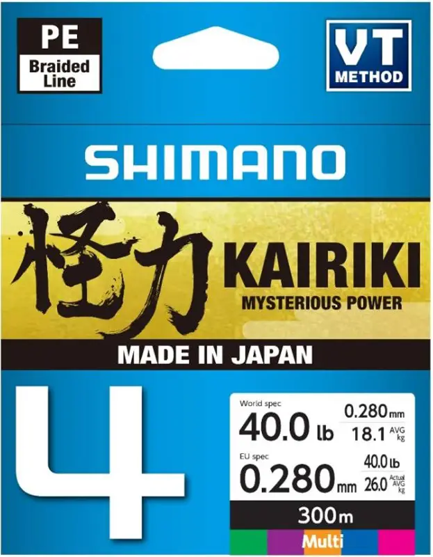 Шнур Shimano Kairiki 4 PE 150m (Multi Color) 0.16mm 8.1kgШнур Shimano Kairiki 4 PE – 4-жильная модель, которая подойдёт для различных видов рыбалки, как в пресной, так и в морской воде. Он изготовлен из высокомодульного полиэтилена (PE) с очень плотным плетением нитей по технологии VT Сonstruction Method, что позволяет ему обладать высокой прочностью на разрыв для борьбы с крупной рыбой. Высокая гладкость поверхности обеспечивает мягкое скольжение шнура по кольцам и, как результат, достижения дальнего заброса. Благодаря низкой степени растяжения (около 3%), он обладает высокой чувствительностью, моментально передавая все поклёвки в руку рыболова.