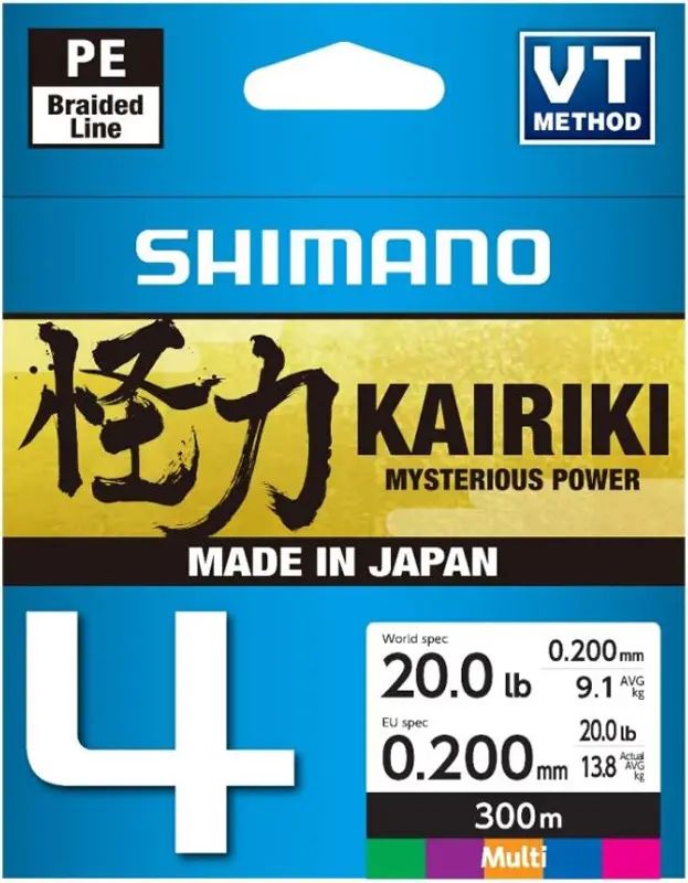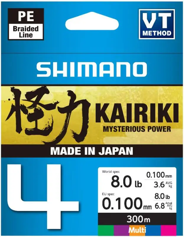 Шнур Shimano Kairiki 4 PE выпускается в нескольких цветах, которые позволят, как замаскировать снасть, так и, наоборот, сделать её более заметной для лучшего визуального контакта. Расцветка Multi Colour включает несколько цветов, сменяющихся каждые 10 метров, что позволяет контролировать расстояние заброса и глубину ловли.