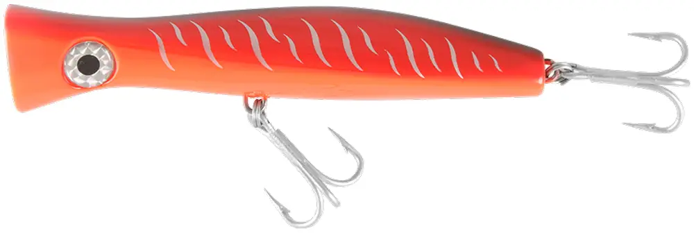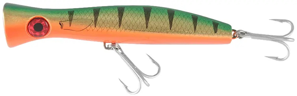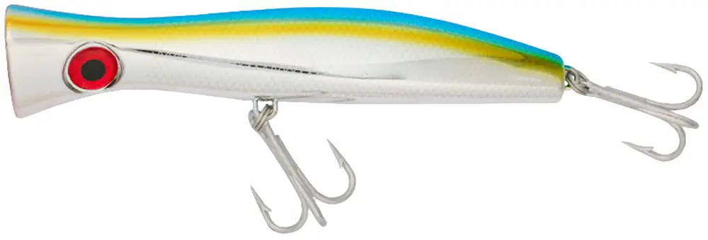 Воблер Halco Roosta Popper выпускается в различных размерах, позволяющих использовать его, как для ловли небольших хищников с берега, так и самых крупных - с катера в открытом океане.