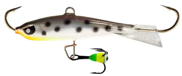 Балансир Lucky John Nordic 5 (з трійником) 60mm 21.0g #103Балансир Lucky John Nordic має типові форму і конструкцію для даного виду приманок. Застосовується в основному для вертикального лову з човна або льоду. У деяких випадках спінінгісти застосовують балансири для ступінчастої проводки, коли риба віддає перевагу саме балансирові аніж силіконовим таі інших приманкам. Балансир Lucky John Nordic при вертикальному застосуванні слід підкидати різким вертикальним помахом вудилища вгору. Після помаху кінчик вудилища також швидко опускається вниз і приманка вільно тоне під дією сили тяжіння. У фазі занурення за рахунок особливої гідродинаміки балансир значно відхиляється від вертикалі і робить рух по звивистій траєкторії. Це привертає увагу хижої риби і в момент, коли коливання приманки практично загасають, відбувається атака. Балансир Lucky John Nordic запропонований в розмірах 40мм / 12г, 50мм / 21г та 60мм / 36г.