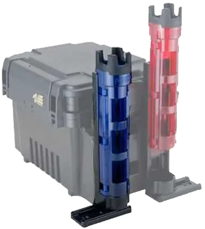 Подставка для вудилища Meiho BM-280 Rod Stand 62 × 70 × 316 Blk/redПідставка для вудлища Meiho Bucket Mouth Rod Stands – серія знімних тримачів спінінгів для ящиків лінійки Bucket Mouth. Всі моделі мають знімну конструкцію для зручності використання. На верхній кромці стійки є виїмки для лапки котушки, завдяки якій вудилище після встановлення в підставку не провертається навколо поздовжньої осі. Міцна та надійна конструкція виготовлена з полікарбонатного пластику, завдяки чому вона стійка до механічних пошкоджень та подряпин. На задній стінці розташована кліпса, за допомогою якої стійка легко кріпиться до ящика, а також її можна регулювати по висоті і фіксувати в трьох положеннях. Підставки Bucket Mouth Rod Stands представлені у вигляді декількох моделей різних розмірів та конструкцій із п'ятьма варіантами кольорів.