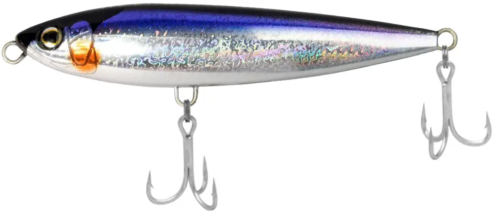 Воблер Shimano Coltsniper Rock Walk 110F 110mm 23.0g #002 Blue PinkВоблер Shimano Coltsniper Rock Walk - поверхнева безлопаткова приманка, яка застосовується в тих випадках, коли риба віддає перевагу годуватися в верхніх шарах водойми. Відсутність лопатки і задня огрузка сприяють далекому і рівному польоту під час закидання. Воблер плаваючий, він розташовується у воді головою вгору, але під час проводки вирівнюється і максимально реалістично імітує малька, що тікає по поверхні. Різної інтенсивності і амплітуди ривки змушують приманку виляти по сторонам, іноді підпірнати і періодично навіть вистрибувати з води. З огляду на те, що приманка розроблена для морської риболовлі, де трофеї відрізняються своєю силою і особливо міцними щелепами, виробник подбав про те, щоб зробити конструкцію Rock Walk максимально надійною. Корпус 3X BODY виконаний з протиударного пластика, а металевий каркас має цільну конструкцію, що в комплексі дозволяє витримувати боротьбу з надзвичайно великими трофеями.